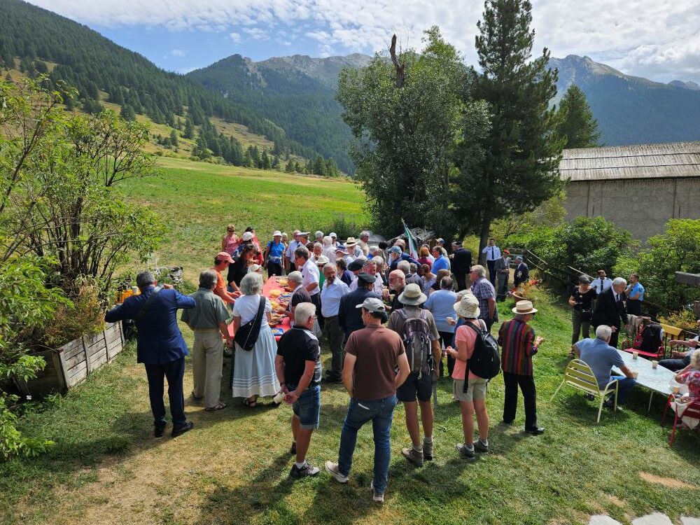 Après les remerciements aux porte-drapeaux présents, un apéritif était offert par la mairie d’Abriès-Ristolas, et servi dans le cadre magnifique du refuge de La Monta par Stéphanie et Olivier.